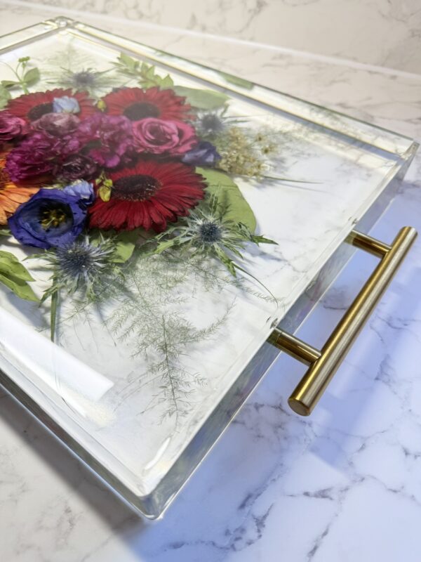 Each tray is individually handcrafted by ResinIt in the UK. Because every bouquet is unique, no two trays will ever look the same. Consequently, your tray becomes a truly one-of-a-kind keepsake.